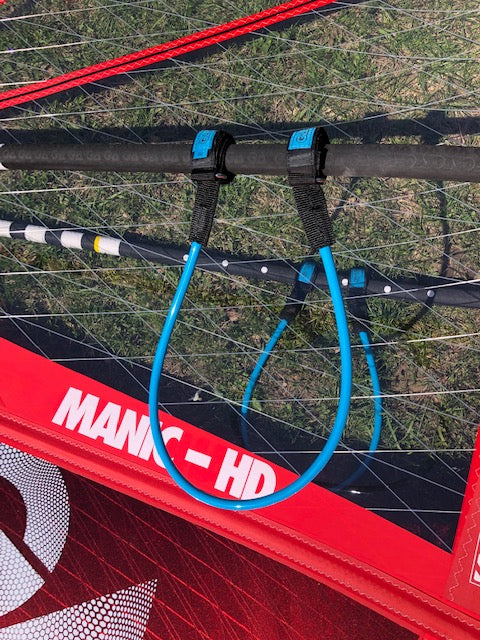 Quick fix system allows the user to quickly swap out their harness lines without taking apart their boom. You do not need to remove the boom tailpiece to mount these lines- just wrap them around and securely velcro them on. Set of two harness lines.