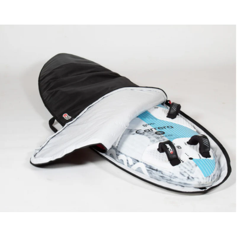 NOTE: Sizing is flat bag measurements. Check the red measurements above for suggestions. It is generally best to add at least 10cm over the width of your board to get a good fit. For example, if your board is 65 cm wide, you should get a bag that is at least 75cm wide, or wider if the board is thick/boxy.